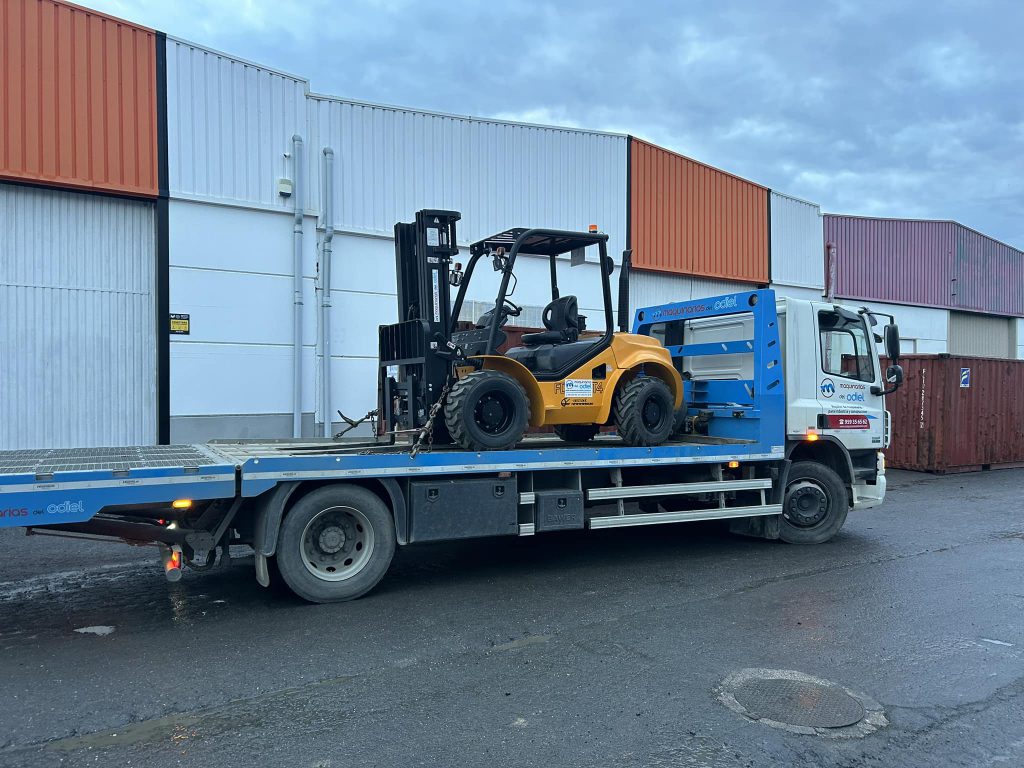 Incorporamos a nuestra flota nueva carretilla 4×4 diesel, 2500 KG de la marca Euroyen, fiabilidad y robusted son sus señas. Saliendo.